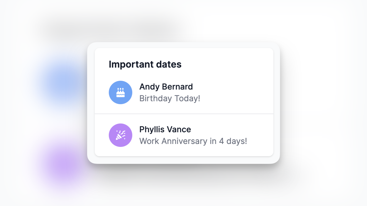 From birthdays and anniversaries to work milestones, stay in the loop with notifications and reminders, fostering a deeper connection with your team.